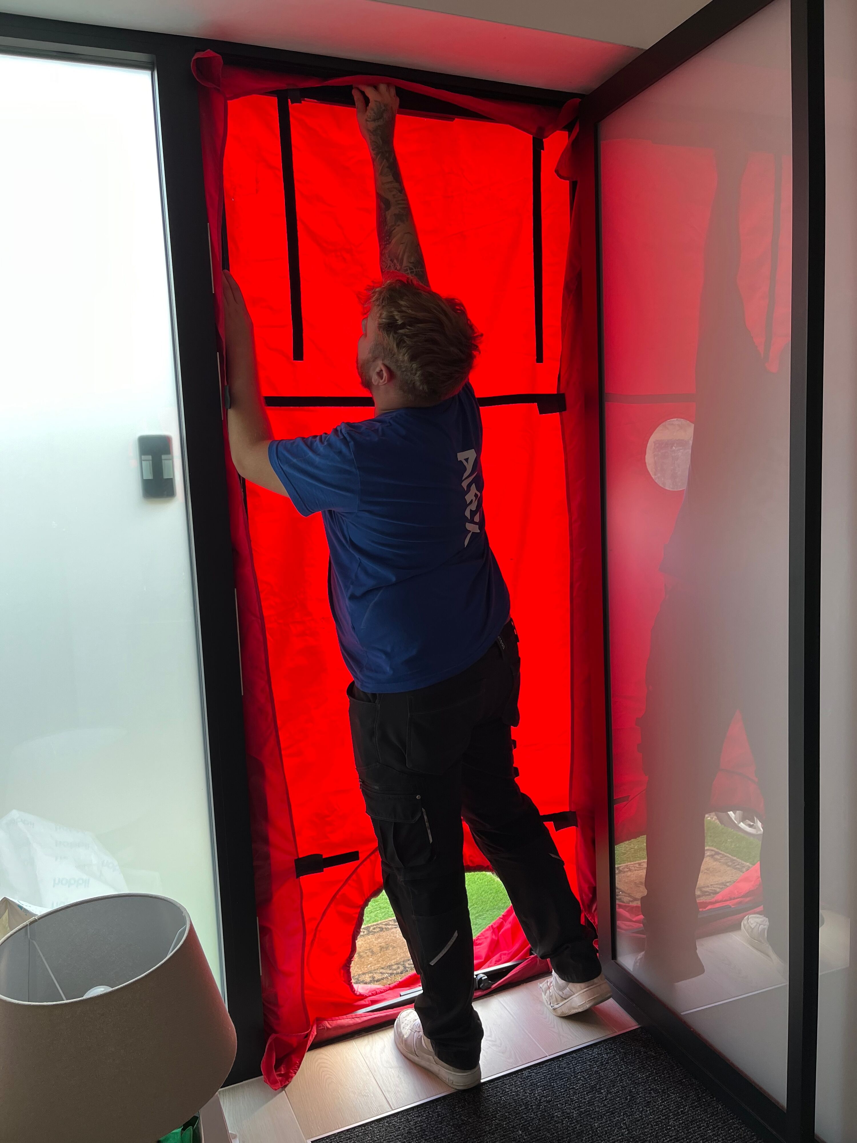 Michaël benadrukt echter dat niet alles zomaar kan worden afgeplakt, omdat Air Experts altijd volgens de Vlaamse normering (NBN EN 13829) werken.