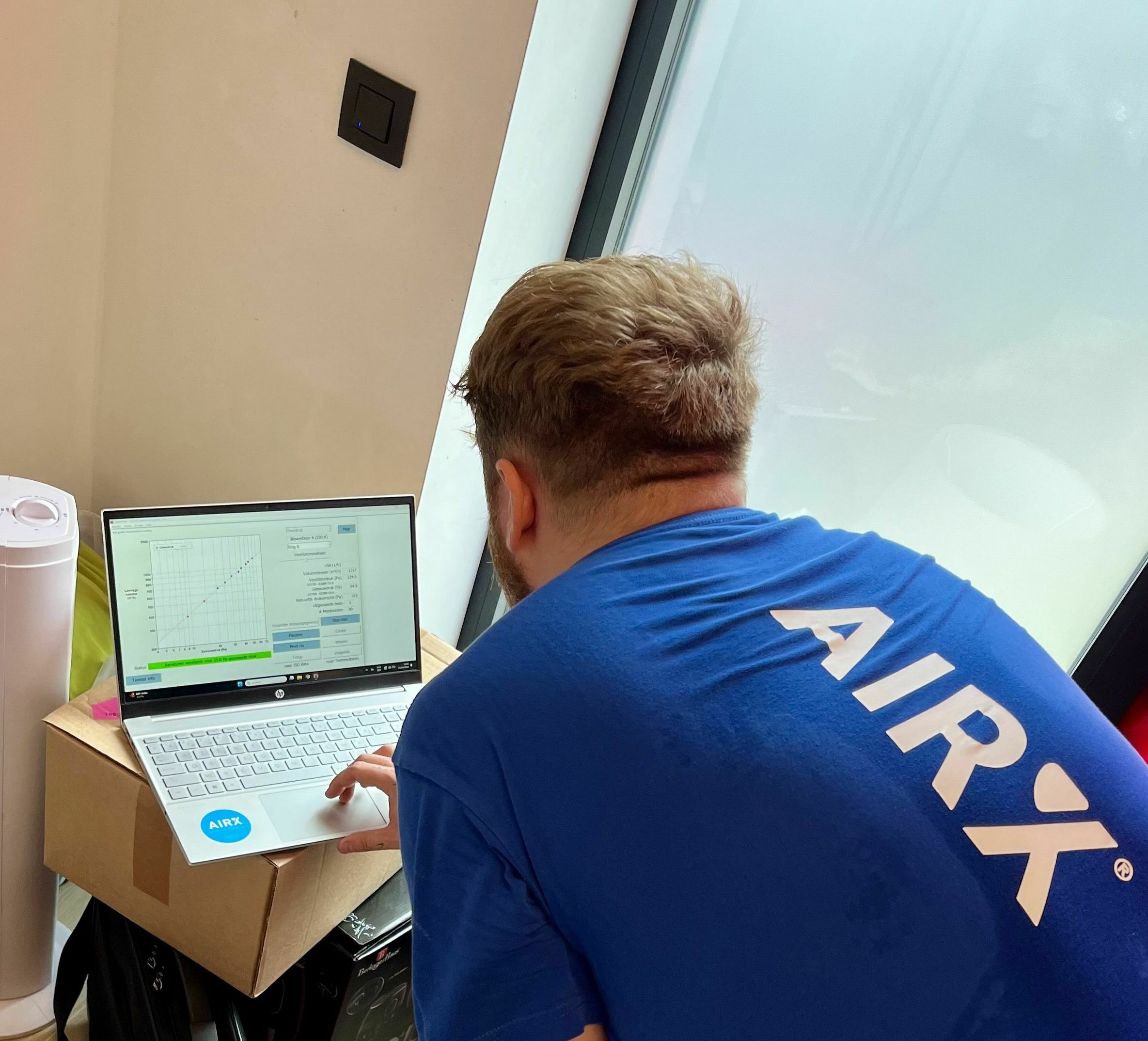 "Gemiddeld levert de test een resultaat van ongeveer 2,5 m³/h per m² op, wat de bouwheer 9 E-peilpunten kan opleveren.